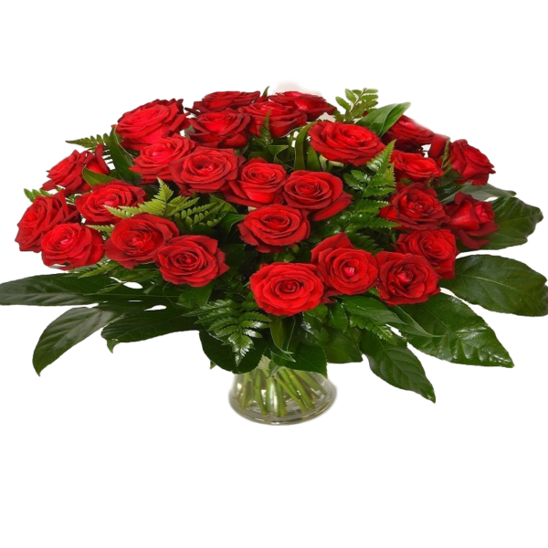 זר ורדים אדומים מרהיב עם הורדים הכי יפים וטריים שלנו. מתנה רומנטית וקלאסית שנותנים למי שאוהבים. הזר מכיל ורדים אדומים בשילוב ענפי ירק מתאימים
