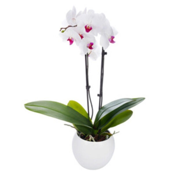 סחלב דו ענפי יפיפה בכלי כרס מותאם מתנה אלגנטית ומרשימה