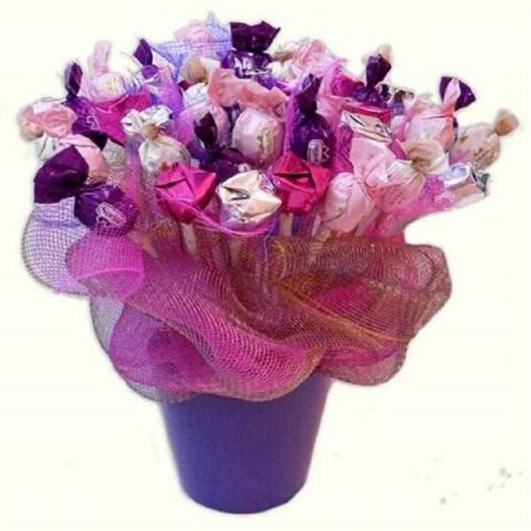 פיקוס אורין זר מתוק – זר שוקולדים יפיפה המורכב מ30 שיפודים של פרליני שוקולד איכותיים וטעימים במיוחד! השזורים בכד מעוצב.
