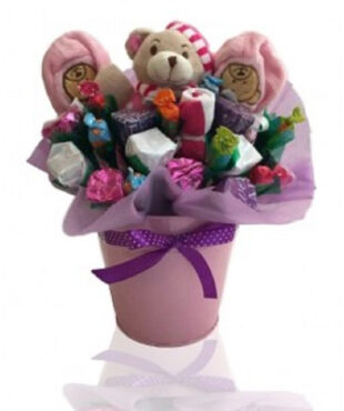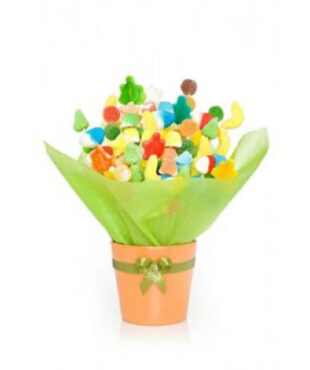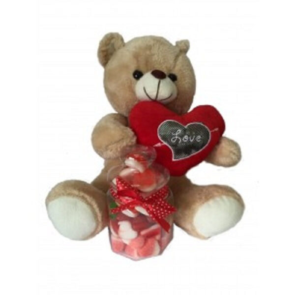 דובי מתוק ומפנק האוחז צנצנת בה מגוון סוכריות גומי צבעוניות. מתנה מחממת לב. גודל הדובי : כ 28 ס”מ